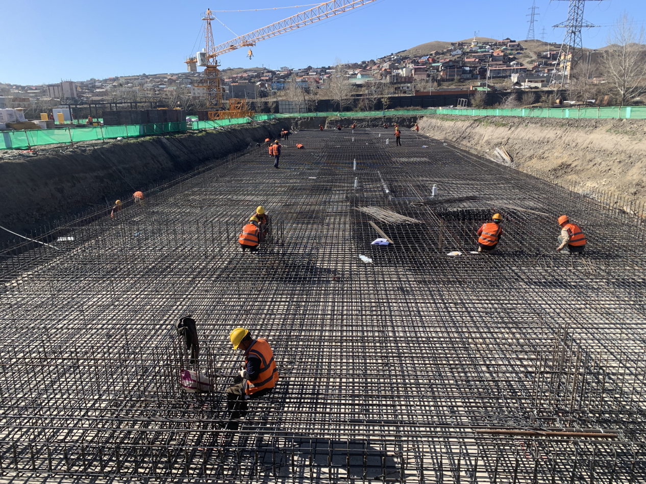 本項目位于蒙古國首都烏蘭巴托的核心區(qū)域,總建筑面積達14.8萬平方米,主要包括12棟9層住宅樓和8棟12層住宅樓,共計1980戶住宅單元,是烏蘭巴托市重點民生工程。項目開工建設(shè)后,從土方大開挖到大面積支模,從縱橫交錯密如蛛網(wǎng)的鋼筋綁扎到筏板基礎(chǔ)大體積混凝土澆筑,項目團隊以“開局就是決戰(zhàn),起步就要沖刺”的奮斗姿態(tài),合理調(diào)配施工力量,嚴(yán)格落實安全管控與質(zhì)量監(jiān)督,筑牢安全質(zhì)量“雙防線”,保障作業(yè)流程安全無縫銜接。連日來,二百余名建設(shè)者凝心聚力,攻堅克難,開啟大干模式,晝夜輪班奮戰(zhàn),高效優(yōu)質(zhì)完成10棟樓筏板基礎(chǔ)施工任務(wù),受到蒙方項目管理機構(gòu)主要領(lǐng)導(dǎo)的好評。