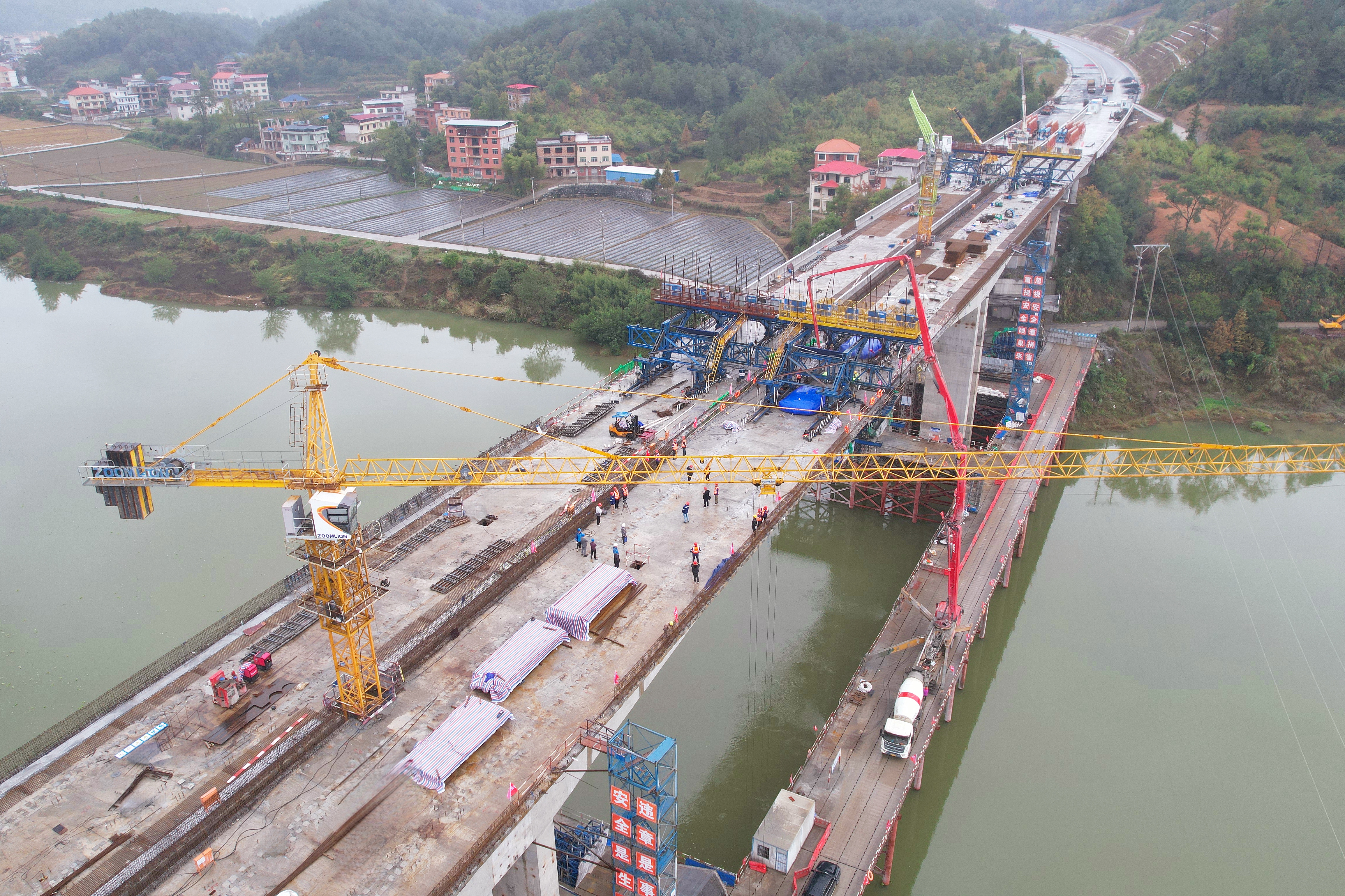 周家赧水特大橋的成功合龍,不僅破解了項目推進的關(guān)鍵瓶頸,更點燃了“大干四季度”的沖刺激情。如今,行走在G59呼北高速新新段公路項目沿線,路基蜿蜒舒展,橋梁橫跨溝壑,宛如一條蓄勢騰飛的巨龍,盤踞于湘西南山水之間,成為這片奇美地貌上的“景中之景”。