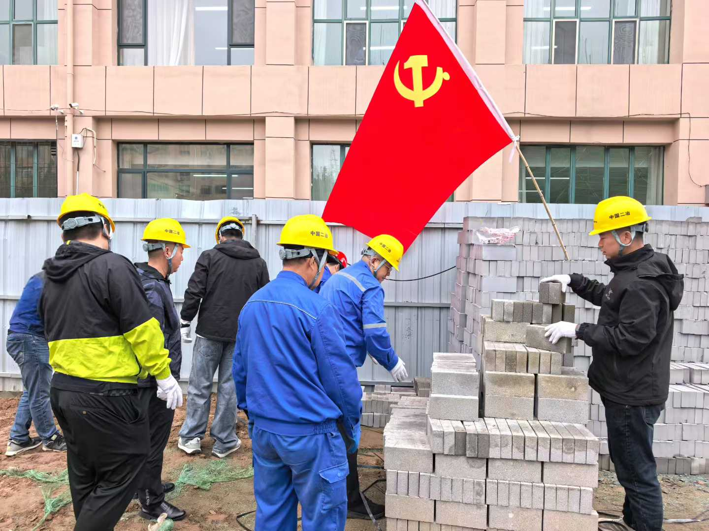活動當日,參加活動人員對施工現(xiàn)場、材料堆場、施工道路等重點區(qū)域展開全方位清理。在施工現(xiàn)場,對素土裸露的區(qū)域進行綠網覆蓋;在材料堆場,大家將混凝土磚碼放整齊,并按照施工規(guī)范重新堆放建筑材料;在施工道路兩旁,職工們清洗路邊廣告標牌,清掃地面的塵土碎屑;現(xiàn)場熱火朝天,每一位黨員職工都以實際行動踐行“勞動最光榮”的理念,他們用辛勤汗水擦亮工地的每一處角落。