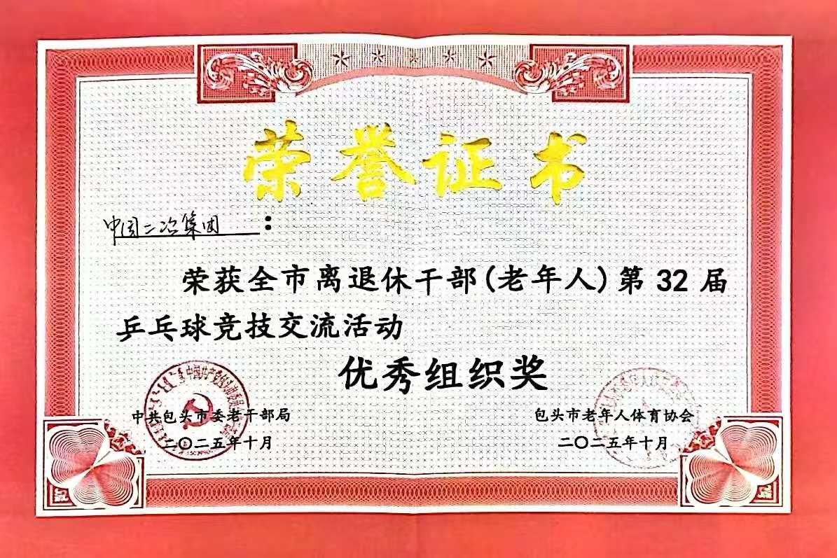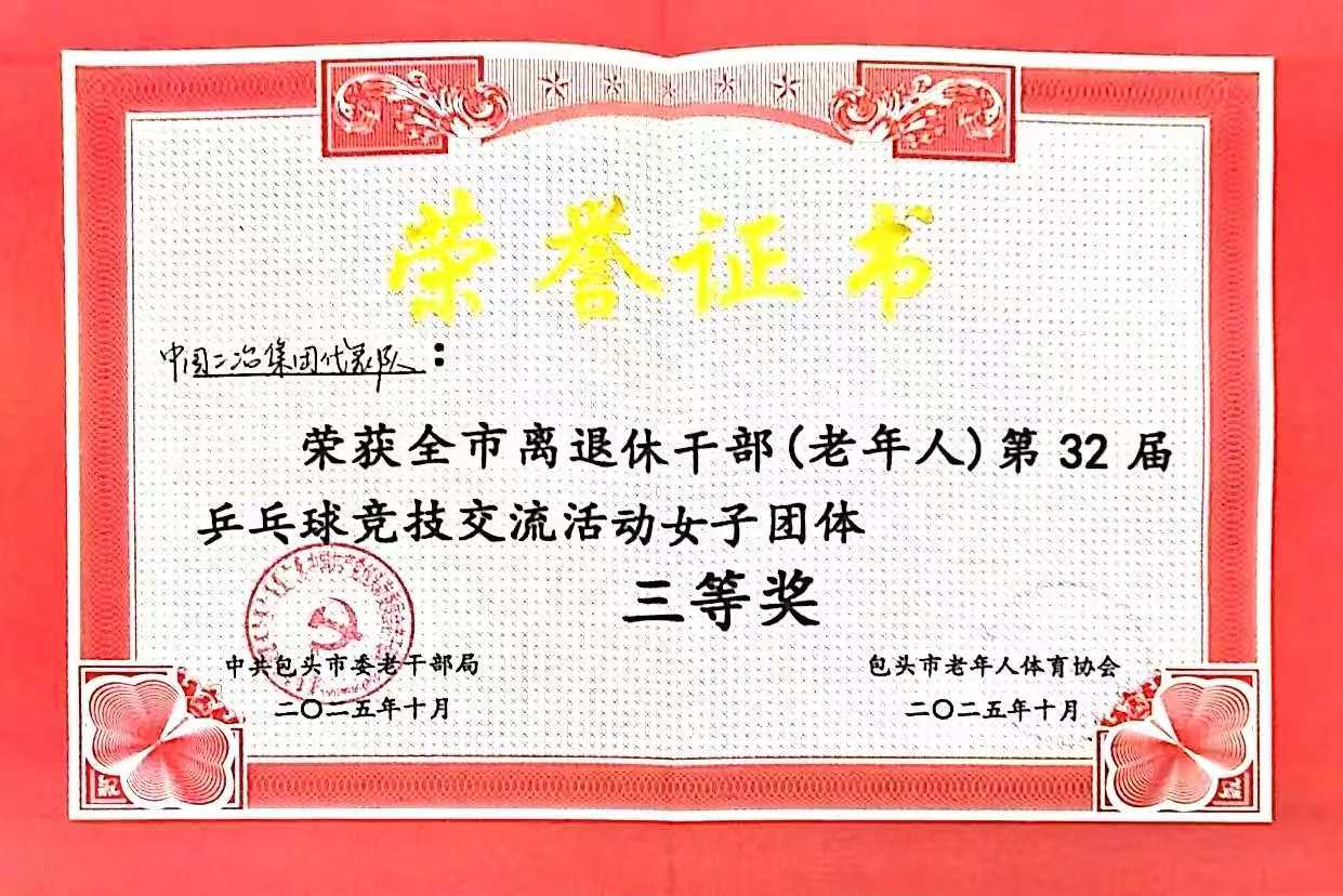 近日,由包頭市委老干部局、市老年人體育協(xié)會(huì)主辦,市老干部活動(dòng)服務(wù)中心承辦的全市離退休干部(老年人)第32屆乒乓球競(jìng)技交流活動(dòng)圓滿結(jié)束,中國(guó)二冶在此次活動(dòng)中成功斬獲優(yōu)秀組織獎(jiǎng)與女子團(tuán)體三等獎(jiǎng)兩項(xiàng)榮譽(yù)。