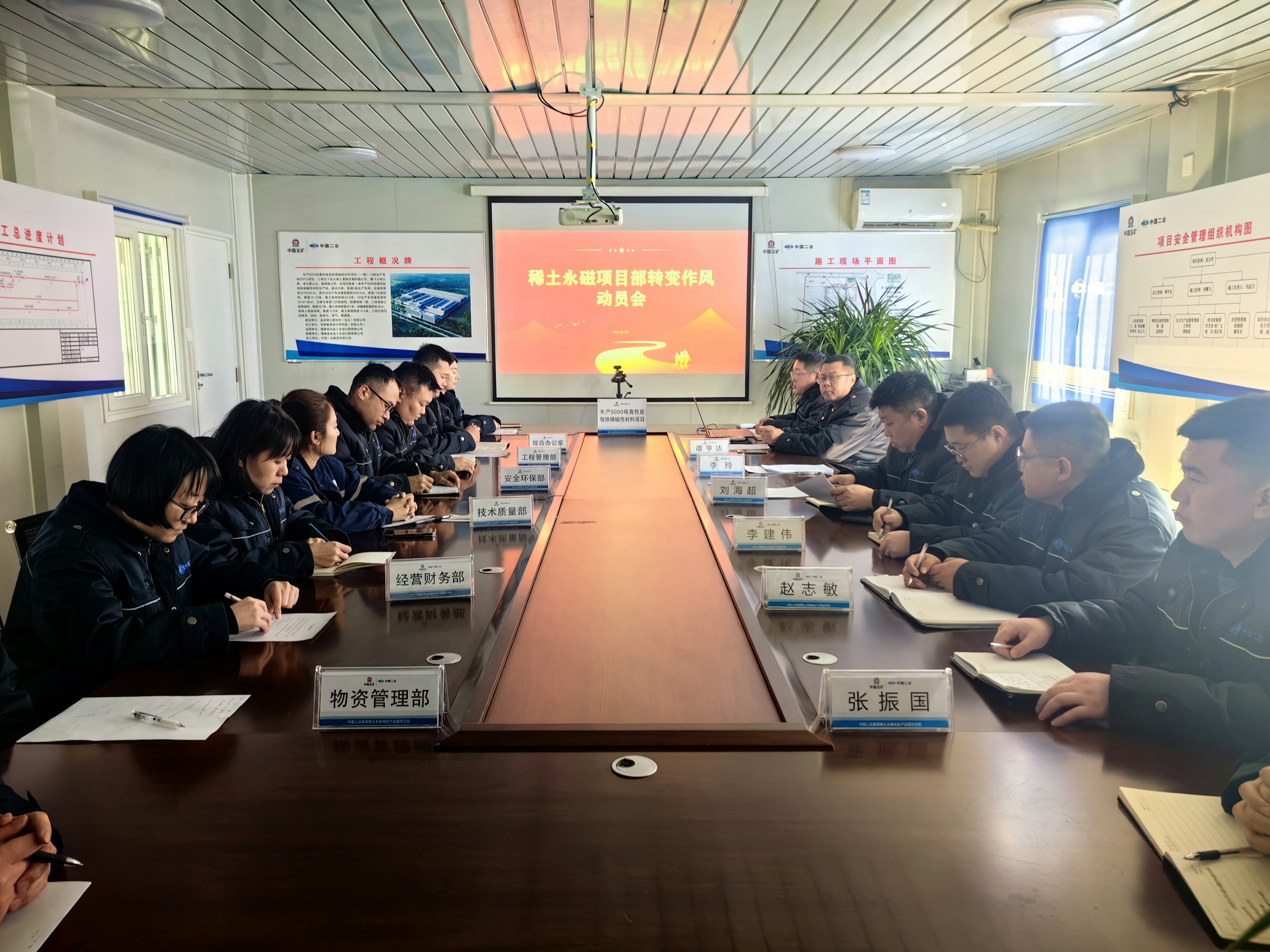 3月17日,城建分公司稀土永磁項目部召開轉(zhuǎn)變作風(fēng)動員會,強(qiáng)力推出“六個堅持”加強(qiáng)作風(fēng)建設(shè),細(xì)化崗位職責(zé),舉一反三查找不足,提升工作質(zhì)量,樹新風(fēng)、立正氣,鼓足干勁實現(xiàn)全年目標(biāo)。