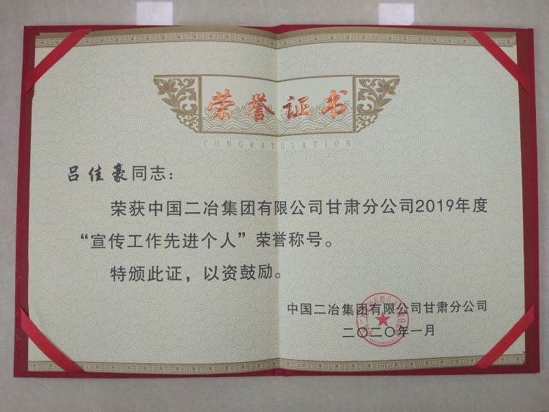----記中國二冶集團甘肅分公司綜合辦公室呂佳豪
