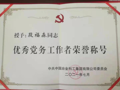 通過不斷地積累與總結(jié),提煉以往工作經(jīng)驗(yàn),不斷加強(qiáng)自身思想建設(shè)、提升工作能力,段福森同志被授予“中冶集團(tuán)安全生產(chǎn)先進(jìn)個人”“中冶集團(tuán)優(yōu)秀黨務(wù)工作者”“包頭市優(yōu)秀黨務(wù)工作者”“中國二冶優(yōu)秀黨務(wù)工作者”“中國二冶先進(jìn)生產(chǎn)工作者”等榮譽(yù)稱號。