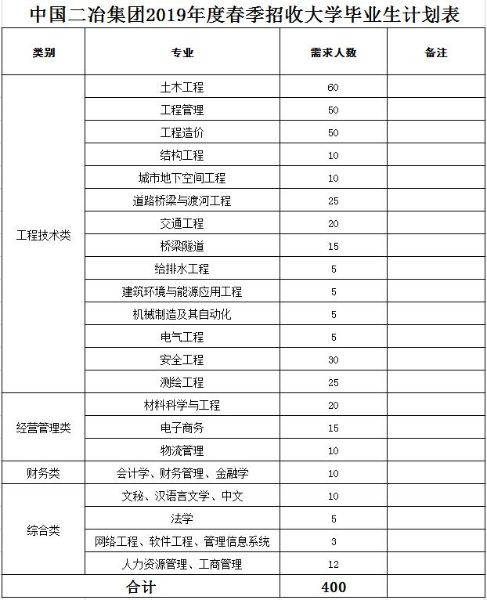 公司計(jì)劃2019年春季招收應(yīng)屆畢業(yè)生共計(jì)400人(詳見附件1)。