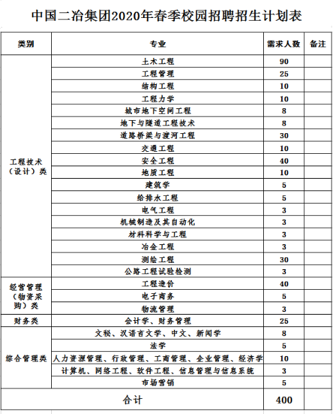 公司 2020 年春季招聘計(jì)劃招收總計(jì) 400 人(詳見附件)。
