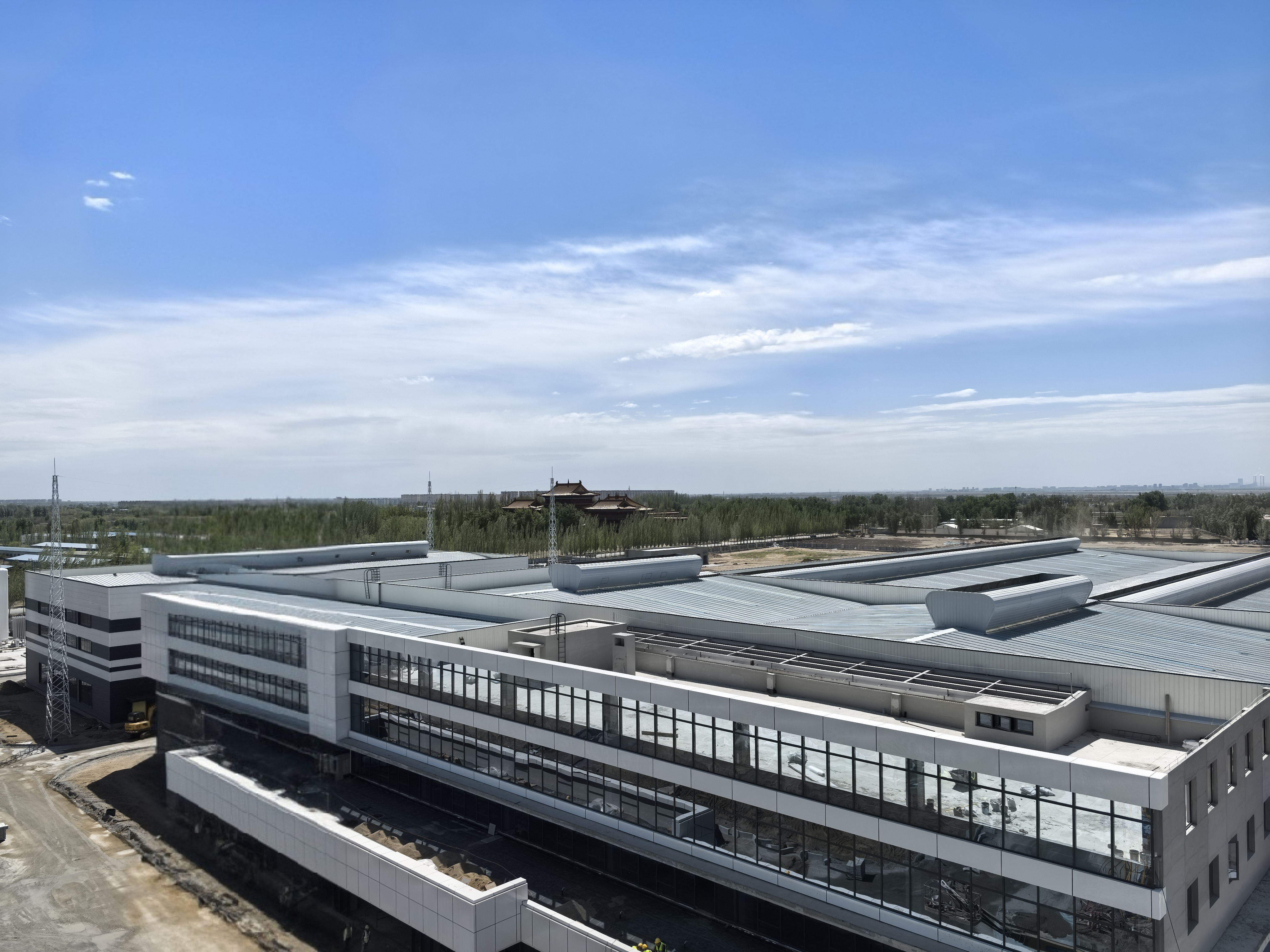本項(xiàng)目坐落于包頭稀土高新區(qū)朝陽(yáng)路以東,騰飛大街以南,凌云路以北,星輝路以西。其中,由城建分公司施工的2#生產(chǎn)車間建筑面積2455.6平方米,單層門式鋼結(jié)構(gòu),高度15.73米,最大單跨跨度34.6米;3#生產(chǎn)車間建筑面積20167.86平方米,主體為單層門式鋼結(jié)構(gòu),附屬局部一層、三層混凝土框架結(jié)構(gòu),高度16.1米,最大單跨跨度43.1米;連廊建筑面積82.35平方米,混凝土框架結(jié)構(gòu),高度10.8米,最大單跨跨度13.5米。工程內(nèi)容包括建筑、結(jié)構(gòu)、給排水、電氣、暖通等。工程開(kāi)工建設(shè)后,項(xiàng)目團(tuán)隊(duì)以嚴(yán)苛標(biāo)準(zhǔn)推進(jìn)工程質(zhì)效,克服冬季低溫、結(jié)構(gòu)復(fù)雜等多項(xiàng)技術(shù)難題,統(tǒng)籌安全、質(zhì)量、進(jìn)度三項(xiàng)目標(biāo),大干168天,實(shí)現(xiàn)“當(dāng)年開(kāi)工、當(dāng)年竣工”的佳績(jī)??⒐を?yàn)收中,評(píng)審專家一致認(rèn)為項(xiàng)目工程質(zhì)量、安全性能、工藝布局均達(dá)國(guó)內(nèi)領(lǐng)先水平,同意項(xiàng)目通過(guò)竣工驗(yàn)收。