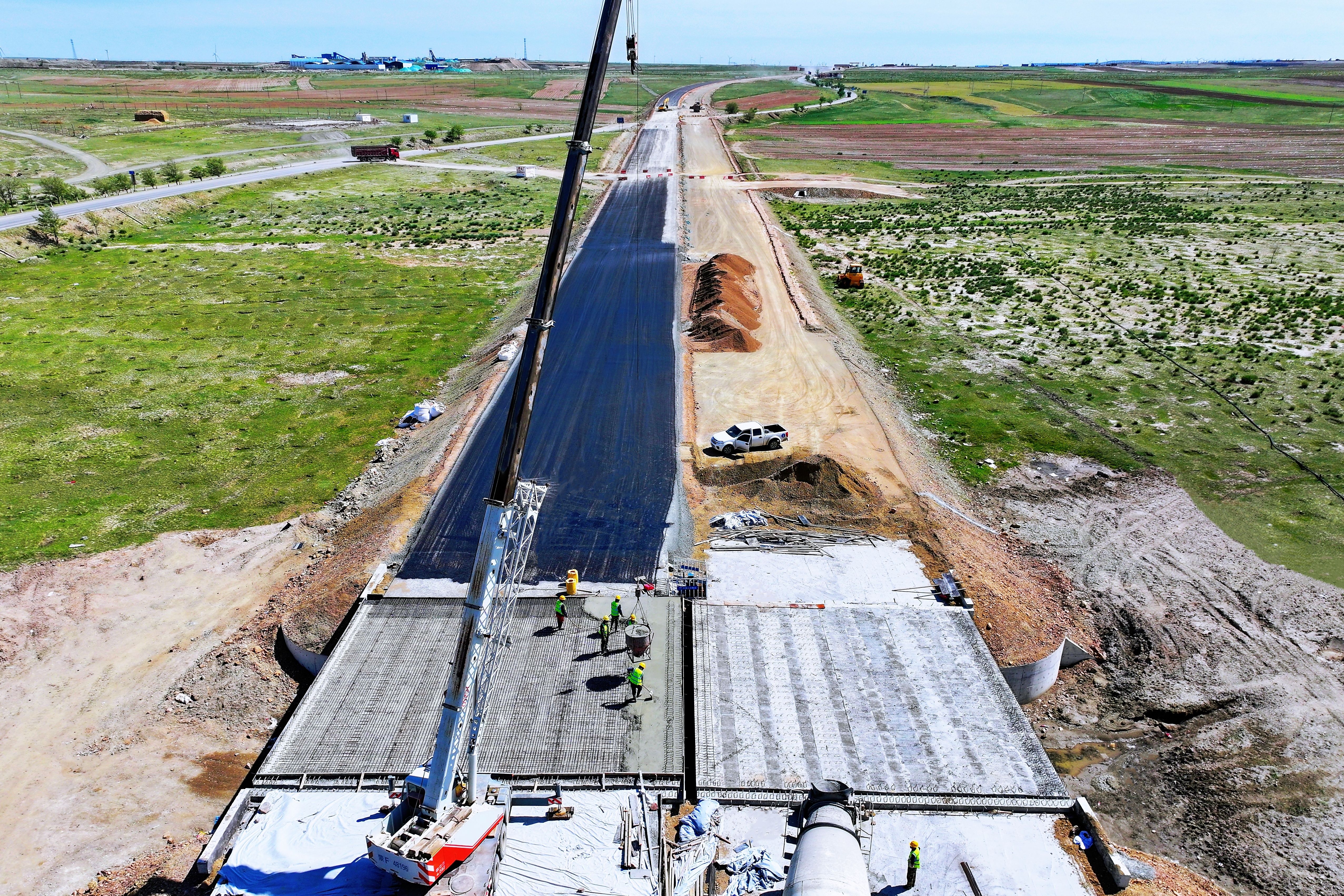 項目路線全長57.9公里,共設(shè)置大、中橋8座及分離式立交1座、小橋12座,此次左幅橋面系施工任務(wù)包括橋頭搭板35個、搭板墊層35個、橋面鋪裝7400余平方米及防撞墻近1500米。為確保該節(jié)點的順利完成,項目團隊提前制定專項施工方案,統(tǒng)籌規(guī)劃、科學組織,明確工藝流程、建立工藝標準,各工序嚴格按照施工方案要求和技術(shù)規(guī)范組織實施;嚴格執(zhí)行工序驗收制度,在綁扎鋼筋網(wǎng)片、混凝土澆筑、養(yǎng)護等關(guān)鍵工序?qū)訉影殃P(guān),保證了橋面系施工高質(zhì)高效完成;同時,設(shè)置專職安全員進行現(xiàn)場巡查,加強隱患排查整治力度,充分利用班前晨會、安全技術(shù)交底等形式加強對一線作業(yè)人員的安全教育;并結(jié)合實際作業(yè)內(nèi)容制定完善的應(yīng)急預(yù)案及防護措施,在臨邊防護、高空作業(yè)等危險區(qū)域設(shè)置警示標志,營造安全有序的作業(yè)環(huán)境,力促實現(xiàn)“安全生產(chǎn)有保障 質(zhì)量進度雙達標”目標,為接下來右幅橋面系及附屬工程施工積累了寶貴經(jīng)驗。