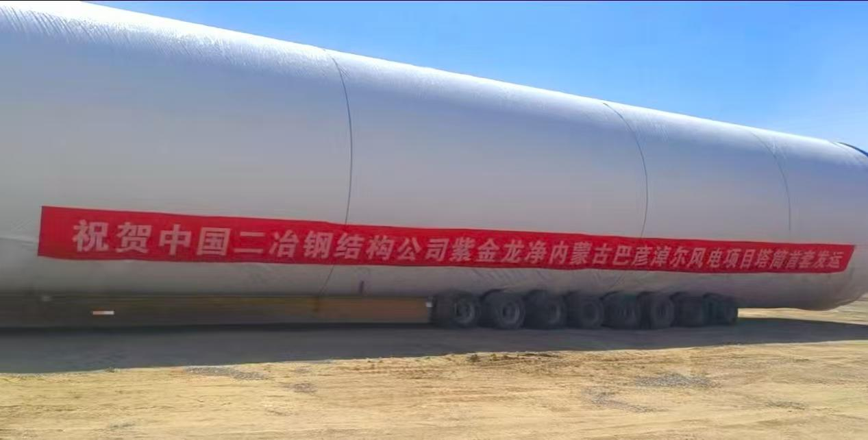 近日,由鋼構分公司新能源事業(yè)部制作的紫金龍凈內蒙古巴彥淖爾可再生能源替代工程風電EPC總承包一期70兆瓦項目首套塔筒順利發(fā)車。