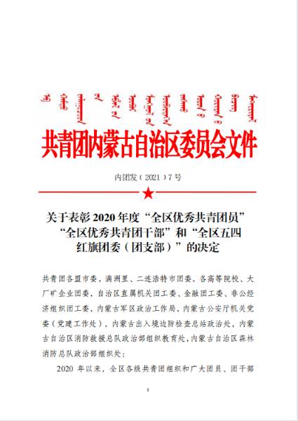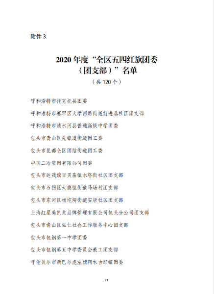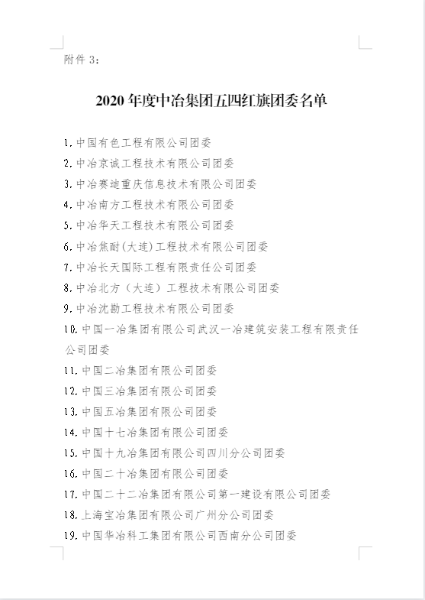五四青年節(jié)前夕,共青團(tuán)內(nèi)蒙古自治區(qū)團(tuán)委、中冶集團(tuán)團(tuán)委分別發(fā)布表彰決定,授予中國二冶團(tuán)委“2020年度五四紅旗團(tuán)委”榮譽(yù)稱號,同時(shí),公司團(tuán)委被共青團(tuán)包頭市委員會(huì)2020年工作考核等次評定為“實(shí)績突出”。