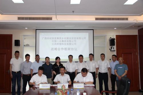 會(huì)談結(jié)束后,在與會(huì)人員的共同見證下,卓振濤、周文元、王志軍分別代表廣西農(nóng)村投資集團(tuán)鄉(xiāng)村建設(shè)投資有限公司、中國二冶、江西燁煜科技有限公司共同簽署《戰(zhàn)略合作框架協(xié)議》。