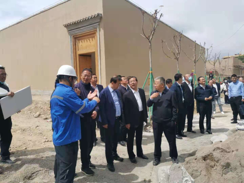 5月19日,甘肅省文化和旅游廳廳長(zhǎng)陳衛(wèi)中、武威市委書(shū)記柳鵬、市長(zhǎng)周偉到中國(guó)二冶甘肅分公司武威文化街區(qū)保護(hù)建設(shè)項(xiàng)目部調(diào)研指導(dǎo)工作。