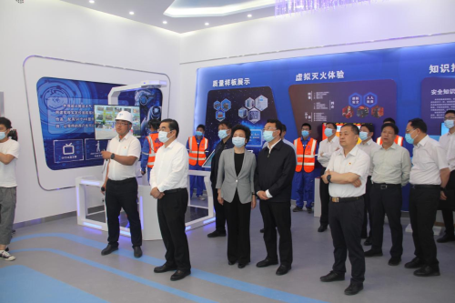 在工程現(xiàn)場,丁繡峰一行觀摩團(tuán)著重參觀了保定ABO項(xiàng)目一期安置房項(xiàng)目(東尹莊)智慧展廳與施工現(xiàn)場,并沿途傾聽該項(xiàng)目部經(jīng)理潘濤對項(xiàng)目情況的講解,參觀中國二冶企業(yè)展示、項(xiàng)目情況等信息,并深入施工一線視察該項(xiàng)目建設(shè)情況。丁繡峰副省長及相關(guān)領(lǐng)導(dǎo)和觀摩團(tuán)成員充分肯定了中國二冶在工程進(jìn)度及工程品質(zhì)方面的成績,并對該工程能夠按要求,高品質(zhì)高質(zhì)量的完成充滿了信心。