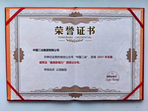 “中國二冶”微信公眾號憑借獨特的審美設(shè)計能力、深入透徹的分析思考、及時準(zhǔn)確的新聞資訊和豐富精彩的企業(yè)文化互動方式,以及引起廣泛關(guān)注和討論的大量原創(chuàng)觀點,在孜孜不倦的運營、維護(hù)、更新下,終獲肯定,榮獲“2021年全國建筑業(yè)最具影響力公眾號”的榮譽稱號;此獎項的獲得進(jìn)一步提升了中國二冶的品牌知曉度和社會影響力,為公司高質(zhì)量穩(wěn)健發(fā)展?fàn)I造了良好氛圍。