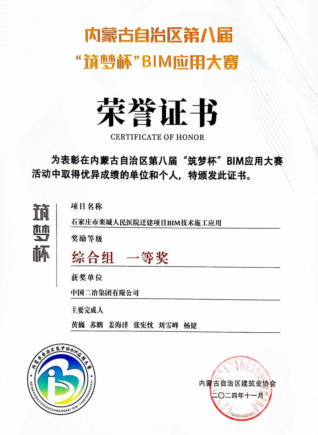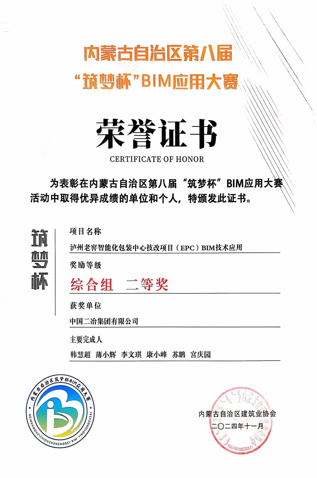 近日,內(nèi)蒙古建筑業(yè)協(xié)會公布了內(nèi)蒙古自治區(qū)第八屆“筑夢杯”BIM應用大賽獲獎名單,中國二冶《石家莊市欒城人民醫(yī)院遷建項目BIM技術施工應用》《瀘州老窖智能化包裝中心技改項目(EPC)BIM技術應用》兩項技術分別榮獲內(nèi)蒙古自治區(qū)第八屆“筑夢杯”BIM應用大賽綜合組一等獎和二等獎。