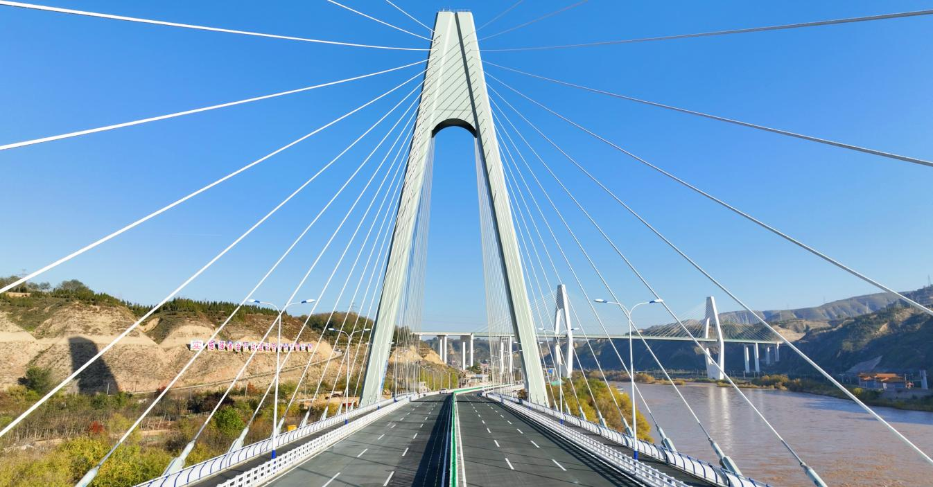 該技術(shù)應(yīng)用于蘭州市西固區(qū)柴家峽黃河大橋工程。大橋全長1250米,為“A”字型高低雙塔雙索面鋼箱梁半漂浮體系結(jié)構(gòu)。由于橋身造型特殊,連接主塔與橋身的是112根承載力各不相同的鋼索,新技術(shù)的應(yīng)用突破了曲線三維空間掛索定位難的難題,且成功以“毫米級”精度通過112根鋼索拉起無墩柱異形大橋,是目前我國首例曲率半徑最小、跨度最大的“S”型高低雙塔雙索面雙曲線半漂浮體系斜拉索橋。