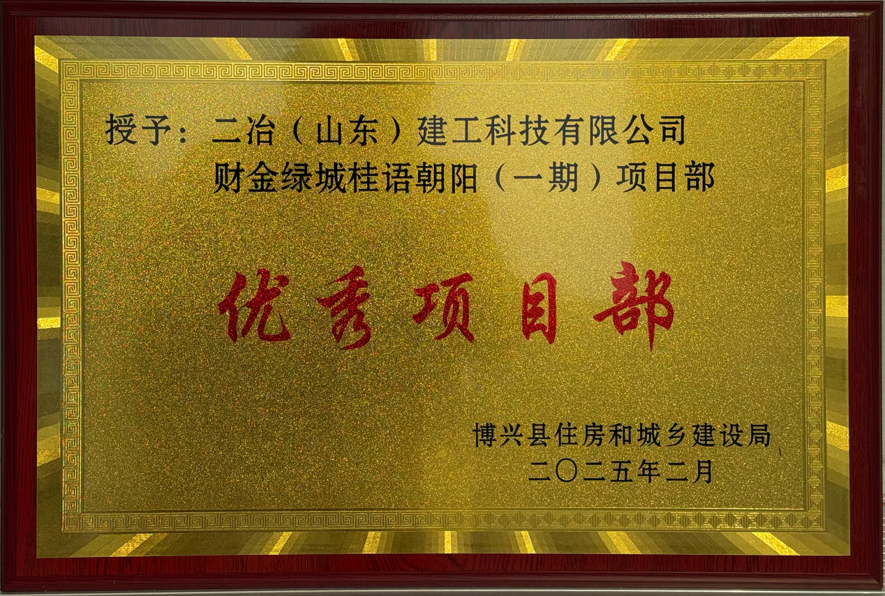 2月22日,濱州市博興縣住房和城鄉(xiāng)建設(shè)局授予二冶(山東)建工科技有限公司桂語朝陽(一期)項(xiàng)目部“優(yōu)秀項(xiàng)目部”。