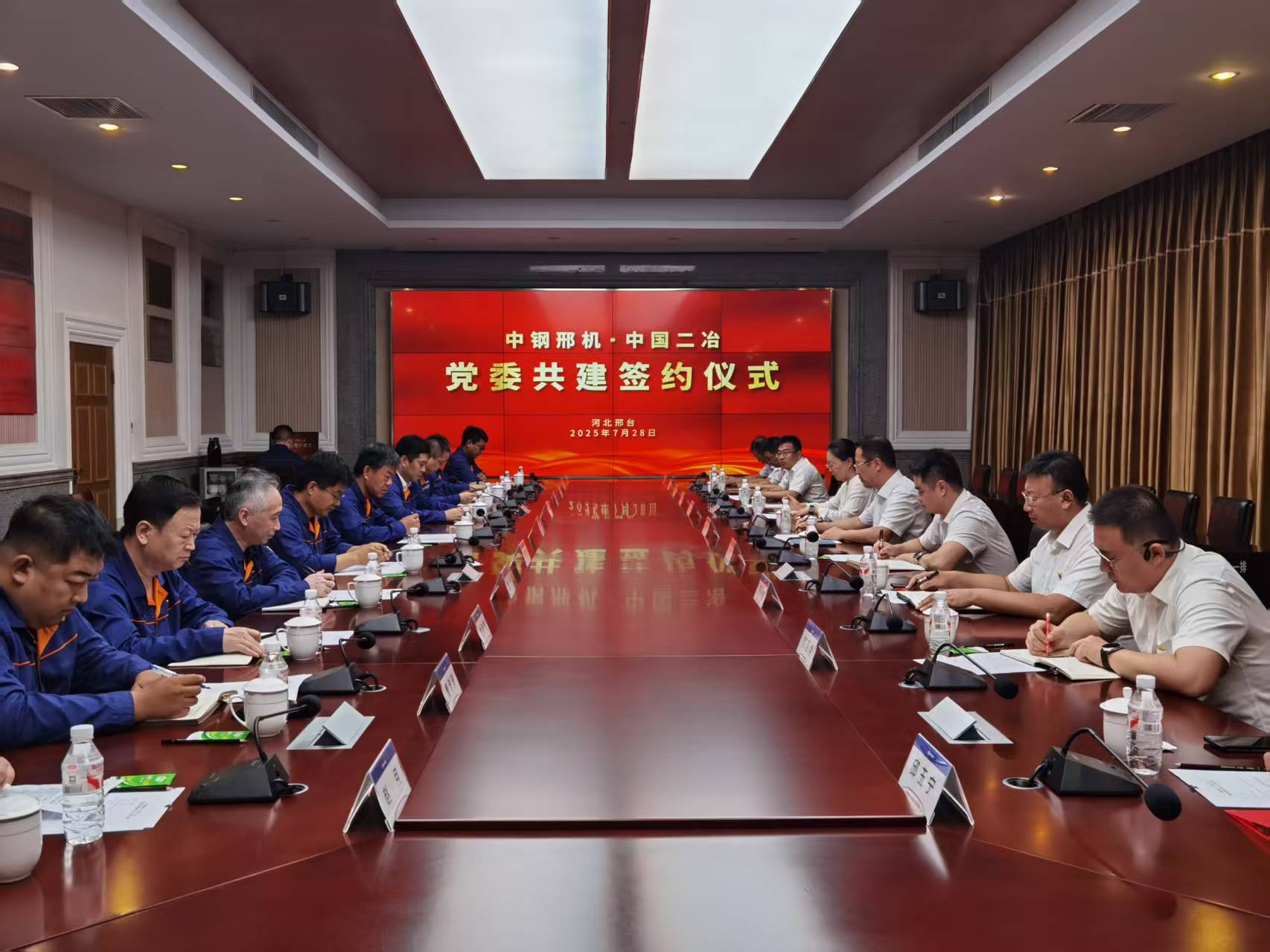 為充分發(fā)揮黨建引領(lǐng)作用,深化國(guó)有企業(yè)黨建與生產(chǎn)經(jīng)營(yíng)融合互促,7月28日,中國(guó)二冶黨委與中鋼邢機(jī)黨委在河北邢臺(tái)舉行黨建聯(lián)建共建簽約儀式。寶武重工(中鋼裝備)副總經(jīng)理,中鋼邢機(jī)黨委委員、工會(huì)主席、總法律顧問(wèn)、董事王瑞;寶武智維、寶武重工紀(jì)委副書記、紀(jì)檢監(jiān)督部部長(zhǎng),中鋼邢機(jī)黨委副書記、紀(jì)委書記林毅;中國(guó)二冶黨委副書記、工會(huì)主席李海;雙方企業(yè)相關(guān)業(yè)務(wù)部門負(fù)責(zé)同志共同參加簽約儀式。