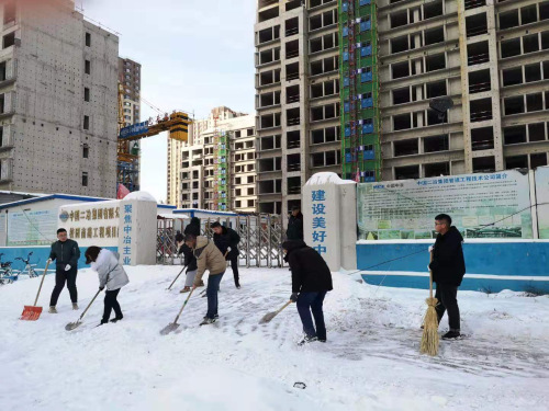 接到指令后,大家紛紛拿起清掃工具,有的揮舞掃帚、有的掄起鐵鍬,爭先恐后對分管片區(qū)開始清掃,寂靜的現(xiàn)場頓時熱鬧起來。經(jīng)過大家兩個多小時的清理,項目部院內(nèi)的積雪全部清掃干凈,施工現(xiàn)場周邊道路上也掃出一條干凈的小道,為周邊群眾出行提供了便利。這次積雪清掃,不僅體現(xiàn)了中國二冶良好的企業(yè)形象,也得到了周圍群眾的一致好評。