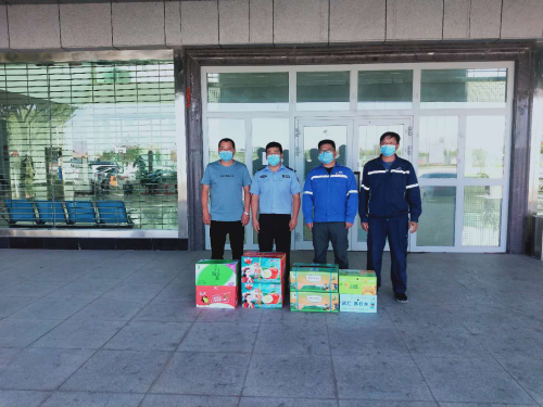 自新型冠狀病毒感染的肺炎疫情暴發(fā)以來,新疆哈密市派出所全體民警沖鋒在前,堅守一線崗位,全力以赴為轄區(qū)群眾保駕護航。5月29日,新疆分公司東疆建設(shè)項目哈密市1-51工程負責人一行前往項目部所在轄區(qū)派出所——哈密市大營房派出所,對堅守在防疫一線為轄區(qū)治安辛苦付出的一線工作者表示感謝,并送上水果、飲料、口罩等慰問品。