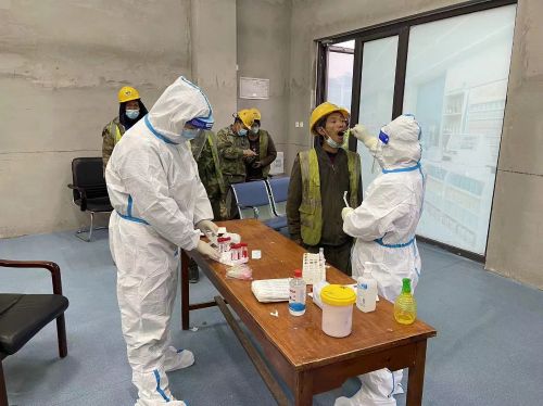 中冶德賢公館項(xiàng)目部作為路橋分公司唯一的在包項(xiàng)目,面對(duì)突如其來(lái)的疫情,逆行出戰(zhàn),與時(shí)間賽跑。項(xiàng)目經(jīng)理帶隊(duì)堅(jiān)守一線(xiàn),為確保項(xiàng)目建設(shè)有序進(jìn)行,挑選符合條件的人員主動(dòng)隔離入住項(xiàng)目部,派出“黨員先鋒隊(duì)”和“青年志愿者服務(wù)隊(duì)”,組織每日進(jìn)場(chǎng)工人核酸檢測(cè)、健康碼查驗(yàn)、區(qū)域內(nèi)全方位消殺,培訓(xùn)后協(xié)助醫(yī)護(hù)人員行核酸采樣,輔助一線(xiàn)工作者核酸檢測(cè)。