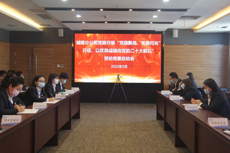 擊鼓催征,號角聲聲;不負春光,奮進新征程。3月4日,城建分公司順利召開“黨旗飄揚、黨徽閃光”行動暨“黨建引領、聚力攻堅,建設人民滿意工程,確保完成全年任務目標,以優(yōu)異成績向黨的二十大獻禮”競賽啟動會。該分公司總經(jīng)理李仲提出要求,分公司副總經(jīng)理劉廣文宣讀競賽方案,分公司副總經(jīng)理張翼鵬主持會議。