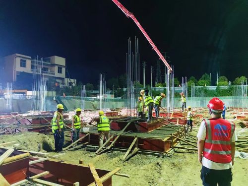 在4#廠房混凝土澆筑期間,夜已很深,陰雨連綿,但是施工現場依舊燈火通明,管理人員施工口令陣陣,運輸車輛源源不斷,各種機械聲不絕于耳,構成了一幅壯觀的“挑燈夜戰(zhàn)圖”……面對緊張的節(jié)點工期、繁重的任務目標,在這沒有硝煙的戰(zhàn)場上,項目上下正進行著一場場與時間賽跑的攻堅戰(zhàn),各施工作業(yè)班組人員采取“緊密配合,見縫插針,立體交叉”的勞動形式,快馬加鞭,攻堅克難,全力推進項目建設,有效地保障了工程進度。