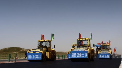 10月的河西走廊,已經(jīng)出現(xiàn)了寒意,冷風(fēng)環(huán)繞著項(xiàng)目部不停的吹,項(xiàng)目部的員工已經(jīng)換上了厚衣服,而在酒嘉項(xiàng)目的施工現(xiàn)場,壓路機(jī)、攤鋪機(jī)的轟鳴聲震耳欲聾,重型卡車來回穿梭,多個(gè)作業(yè)面、幾十輛工程機(jī)械緊張作業(yè),到處是一派熱火朝天、大干快干的生動場面。