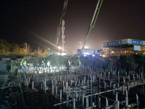 挑燈夜戰(zhàn)干勁高,不怕吃苦掀高潮。10月24日深夜,資陽騮馬新村安置房項目多層樓棟作業(yè)現(xiàn)場燈火如晝、奮楫正酣,700多施工人員奮戰(zhàn)一線。現(xiàn)場澆筑混凝土振搗聲嗡嗡作響,作業(yè)人員正在澆筑2#樓基礎(chǔ)混凝土,此次澆筑方量為200立方米,澆筑時長達5小時。進入四季度以來,資陽安置房項目精心制定工期節(jié)點,倒排工期并分解到月計劃、周計劃,每周日組織召開專題會議對上周計劃進行盤點考核,獎優(yōu)罰劣,同時,公布下周任務(wù)計劃,現(xiàn)場形成了一股干勁兒,各分包單位爭先恐后追趕進度,掀起大干熱潮。