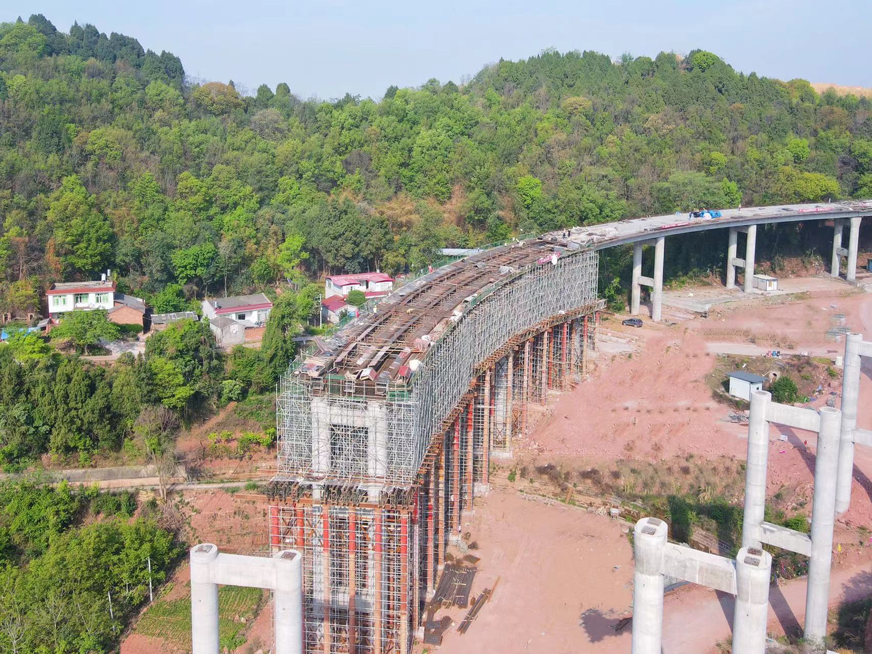 “施工現(xiàn)場工人共計200余名,攤鋪機、壓路機、裝載機、挖掘機、吊車、運輸車等近50臺機械在現(xiàn)場各個工作點位加緊施工。現(xiàn)在,項目部正全力搶抓蓋梁施工、互通立交處A匝道土方施工,在確保安全、質(zhì)量的前提下,迅速掀起大干熱潮,預(yù)計在今年6月完成主線路面的100%,基本達到通車條件,預(yù)計在今年7月底完成附屬設(shè)施的60%、橋梁工程的80%、全線基本達到通車條件;在9月底完成路面工程的100%、附屬設(shè)施工程的100%、橋梁工程的100%,達到交工驗收條件?!敝袊辫髦荽蟮滥涎泳€項目負責人介紹道。