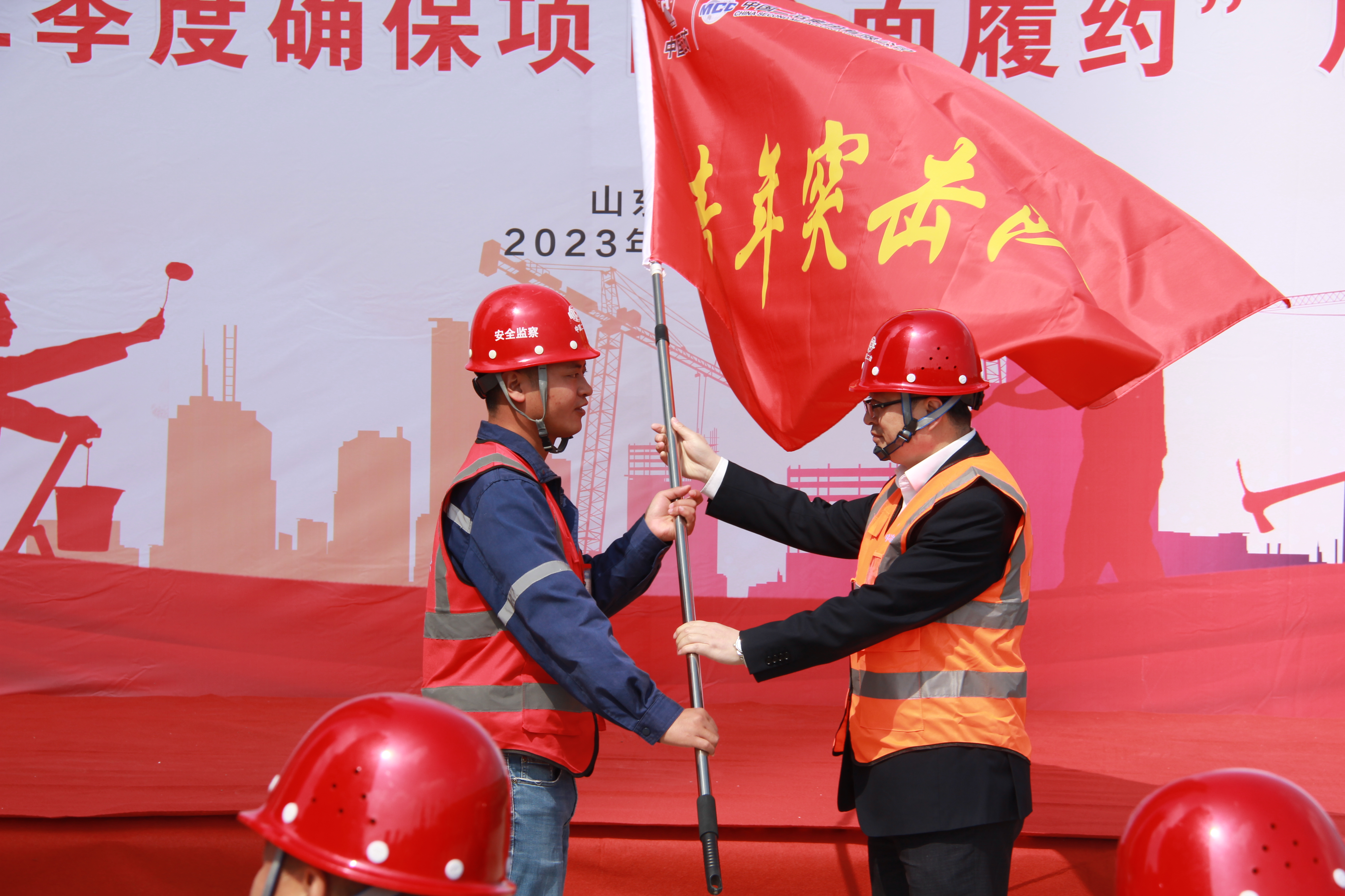 分公司總工程師陳曦向后魏華莊項(xiàng)目授“青年突擊隊(duì)”旗幟