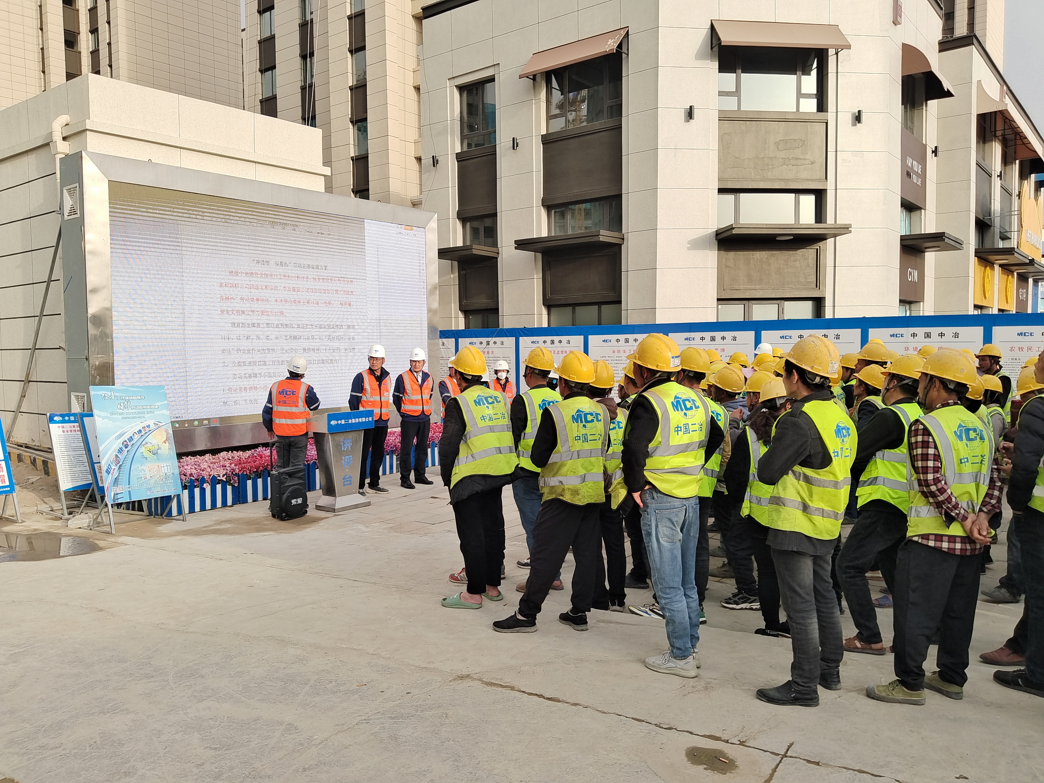 會(huì)上,項(xiàng)目經(jīng)理宣讀了“勞動(dòng)競(jìng)賽實(shí)施方案”,并指出開展此項(xiàng)活動(dòng),旨在動(dòng)員和激勵(lì)管理人員 、作業(yè)人員鼓足干勁,確保項(xiàng)目實(shí)現(xiàn)時(shí)間過(guò)半、任務(wù)過(guò)半的節(jié)點(diǎn)目標(biāo)。并對(duì)勞動(dòng)競(jìng)賽的具體實(shí)施,提出如下要求:一是促生產(chǎn),嚴(yán)格保證6.30南區(qū)竣工驗(yàn)收及北區(qū)主體結(jié)構(gòu)封頂?shù)墓?jié)點(diǎn)目標(biāo)不能變;二是保安全,牢固樹立安全生產(chǎn)的底線思維和紅線意識(shí);三是強(qiáng)質(zhì)量,強(qiáng)化央企鑄造精品住宅的責(zé)任感和使命感。