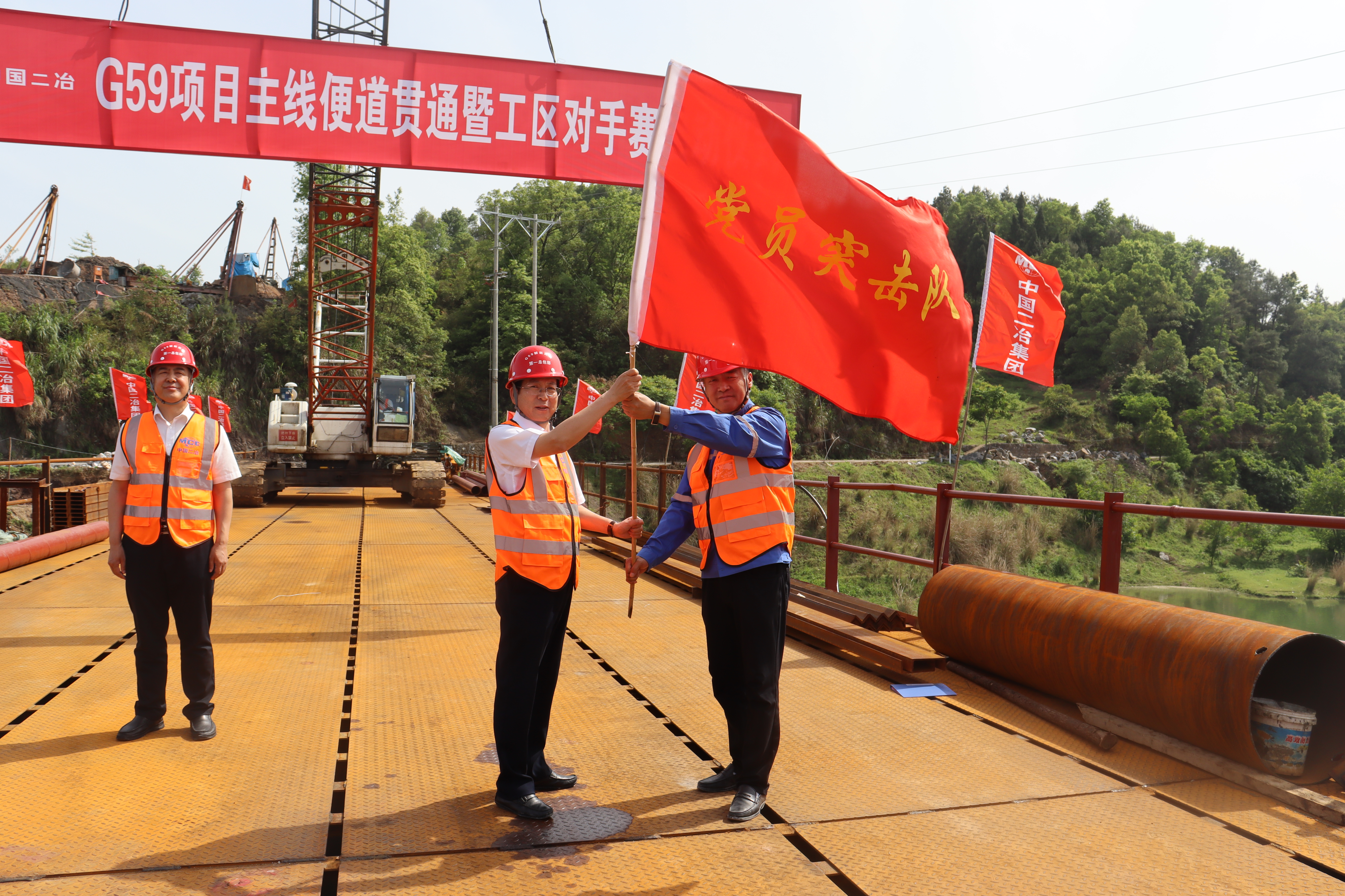 4月30日,路橋分公司G59新新高速項目“主線便道貫通暨工區(qū)對手賽”啟動儀式暨企業(yè)開放日活動在赧水特大橋鋼棧橋上舉行。分公司黨委書記郭泗東、總會計師王文通及分公司副總經(jīng)理兼G59項目部經(jīng)理張勇參加啟動儀式。業(yè)主單位、監(jiān)理單位、分包單位、政府代表及多家主流媒體記者共計70余人參加活動。