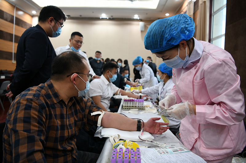 在活動(dòng)現(xiàn)場,前來獻(xiàn)血的職工絡(luò)繹不絕。在工作人員的組織下,大家按疫情防控要求,分隊(duì)列、分批次踴躍獻(xiàn)血,按順序進(jìn)行了領(lǐng)表登記、血型測定、體檢、抽血和觀察休息,活動(dòng)現(xiàn)場秩序井然。獻(xiàn)血過程中,有常年堅(jiān)持無償獻(xiàn)血的“獻(xiàn)血模范”,也有初次參加無償獻(xiàn)血的“新鮮力量”,大家紛紛表示,能以無償獻(xiàn)血這種方式向社會(huì)傳遞正能量,感到特別有意義。當(dāng)大家完成獻(xiàn)血時(shí),他們臉上都露出了欣慰的笑容。