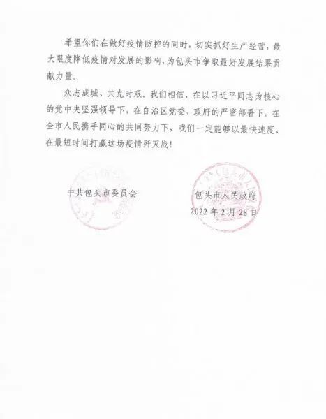 近日,中國二冶相繼收到了包頭市委、市政府、包頭昆河鎮(zhèn)政府、包頭前進(jìn)道辦事處、昆北街道辦事處和少先路街道辦事處的感謝信,感謝中國二冶在此次疫情防控戰(zhàn)役中高站位、講政治、講紀(jì)律,認(rèn)真貫徹落實市委市政府和上級單位有關(guān)疫情防控工作要求,不折不扣地執(zhí)行防控措施,在確保廣大員工生命安全的同時,肩負(fù)起央企的責(zé)任和使命,用有力的支持和快速的行動,全力助力疫情防控,為包頭市疫情防控工作貢獻(xiàn)央企力量。