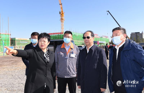 石泰峰走進大地熊建設工地施工現(xiàn)場,映入眼簾的就是如火如荼的建設場景,一棟棟廠房拔地而起,象征著包頭的經(jīng)濟也將迎來騰飛。
