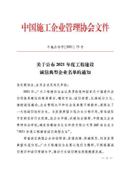 10月28日,由中國施工企業(yè)管理協(xié)會主辦的2021年度中國工程建設企業(yè)信用評價結果及誠信企業(yè)評選揭曉,中國二冶通過AAA信用等級年審并被授予“2021年度中國工程建設誠信典型企業(yè)”。